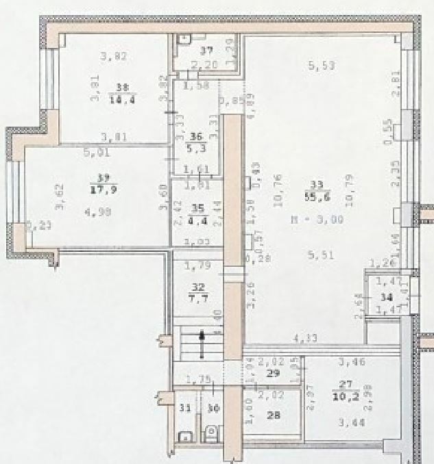 Высота потолка – 3 кв.м